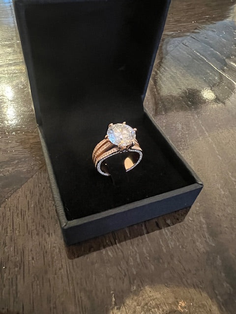 5.00 ct LABGROWN MOISSANITE. 18 kt GULD BELAGT SØLVRING.