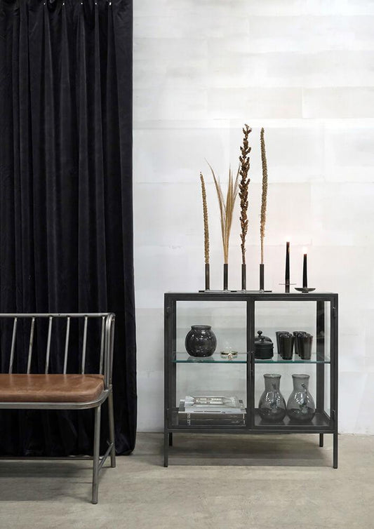 Bænk i jern og læder.
