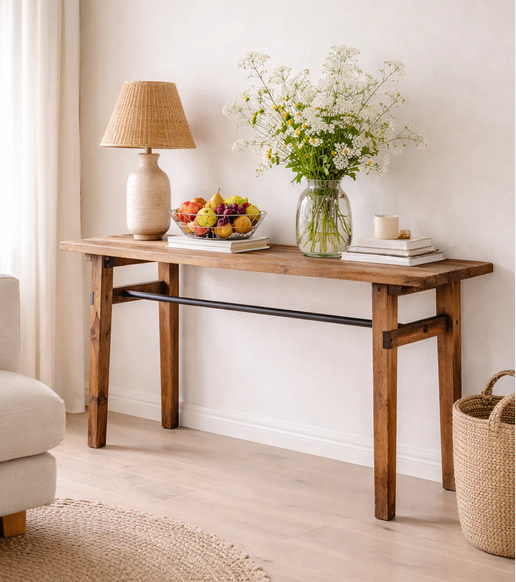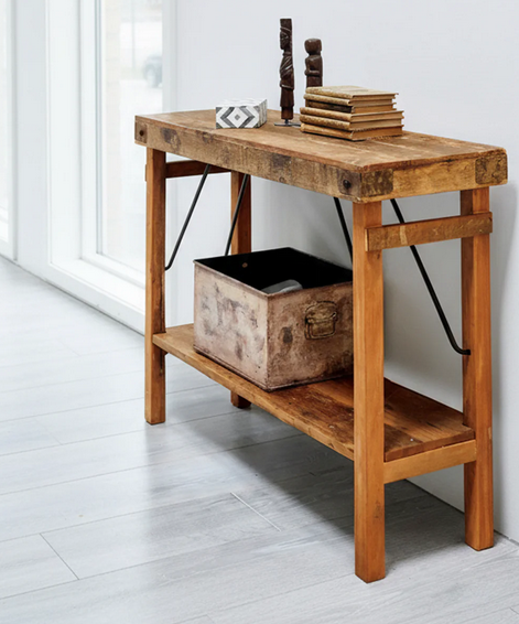 Konsolbord i Genbrugstræ med Hylde – Rustikt