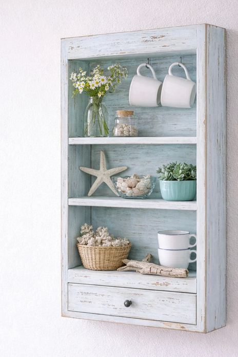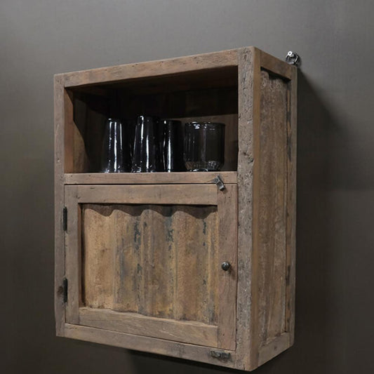 Vægreol med Skuffe af Genbrugt Træ, Blå eller Grøn