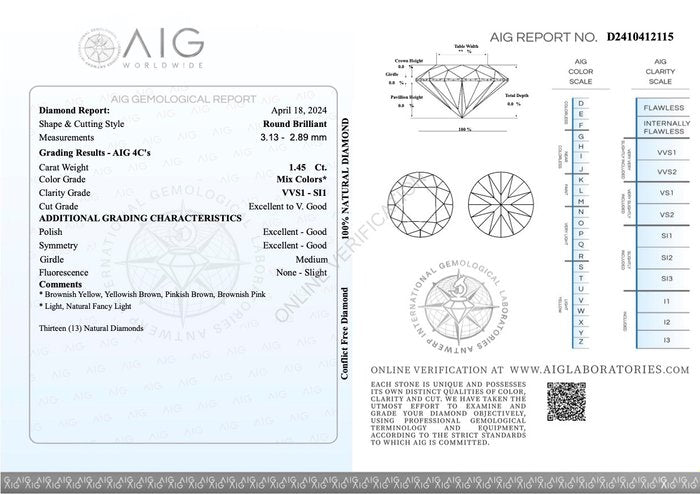 13 pcs Diamond - 1.45 ct - Round - Pinkish Brown, Brownish Pink