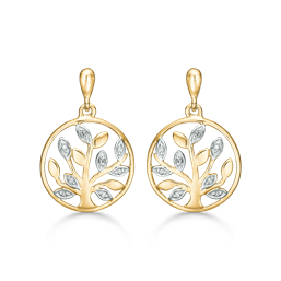 14 kt. guld ørehænger livets træ i cirkel med brillanter.