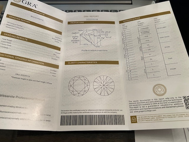 Blue lab. moissanite, 2,00 ct. Klarhed VVS1. Certifikat medfølger.