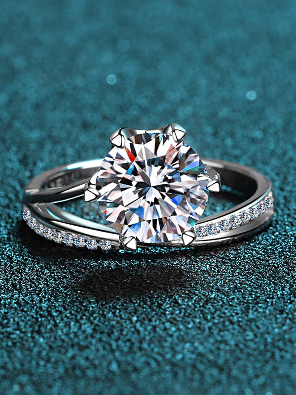3.00 CT MOISSANIT, PLATINBELAGT SØLVRING ROSET.