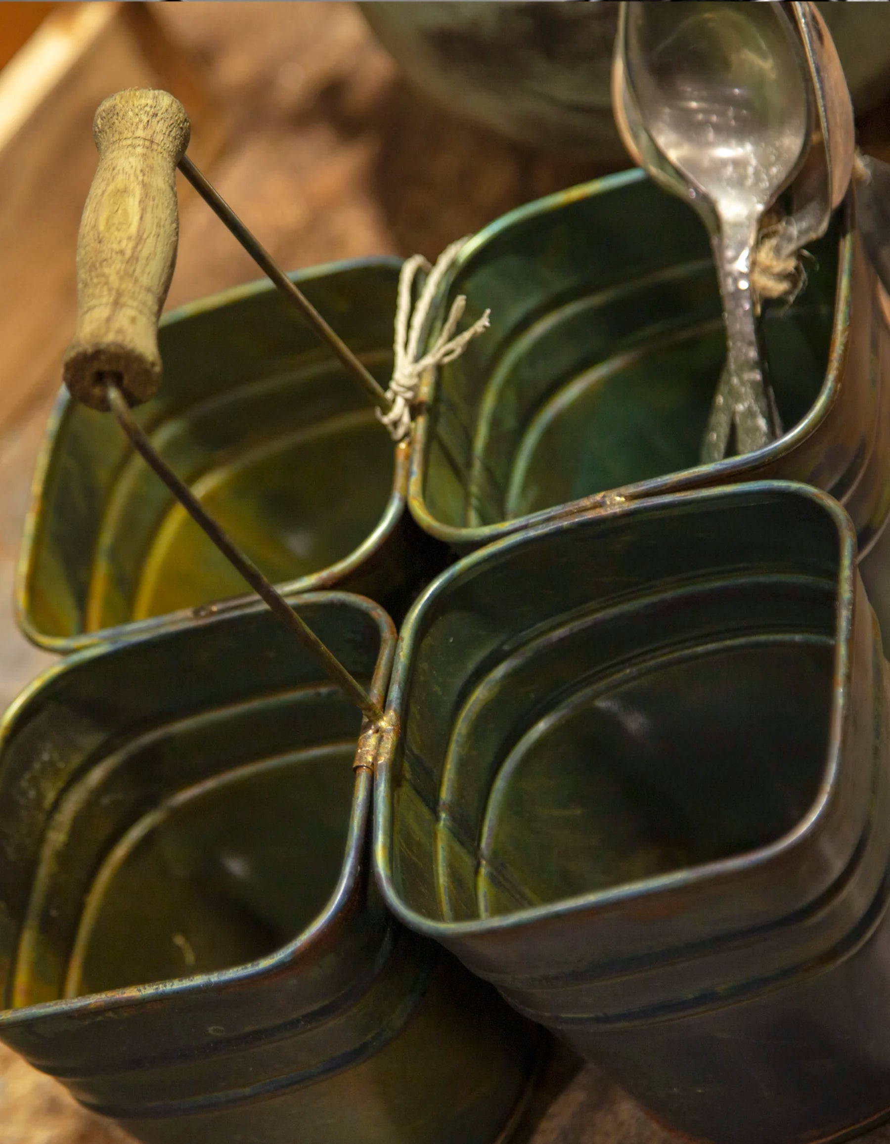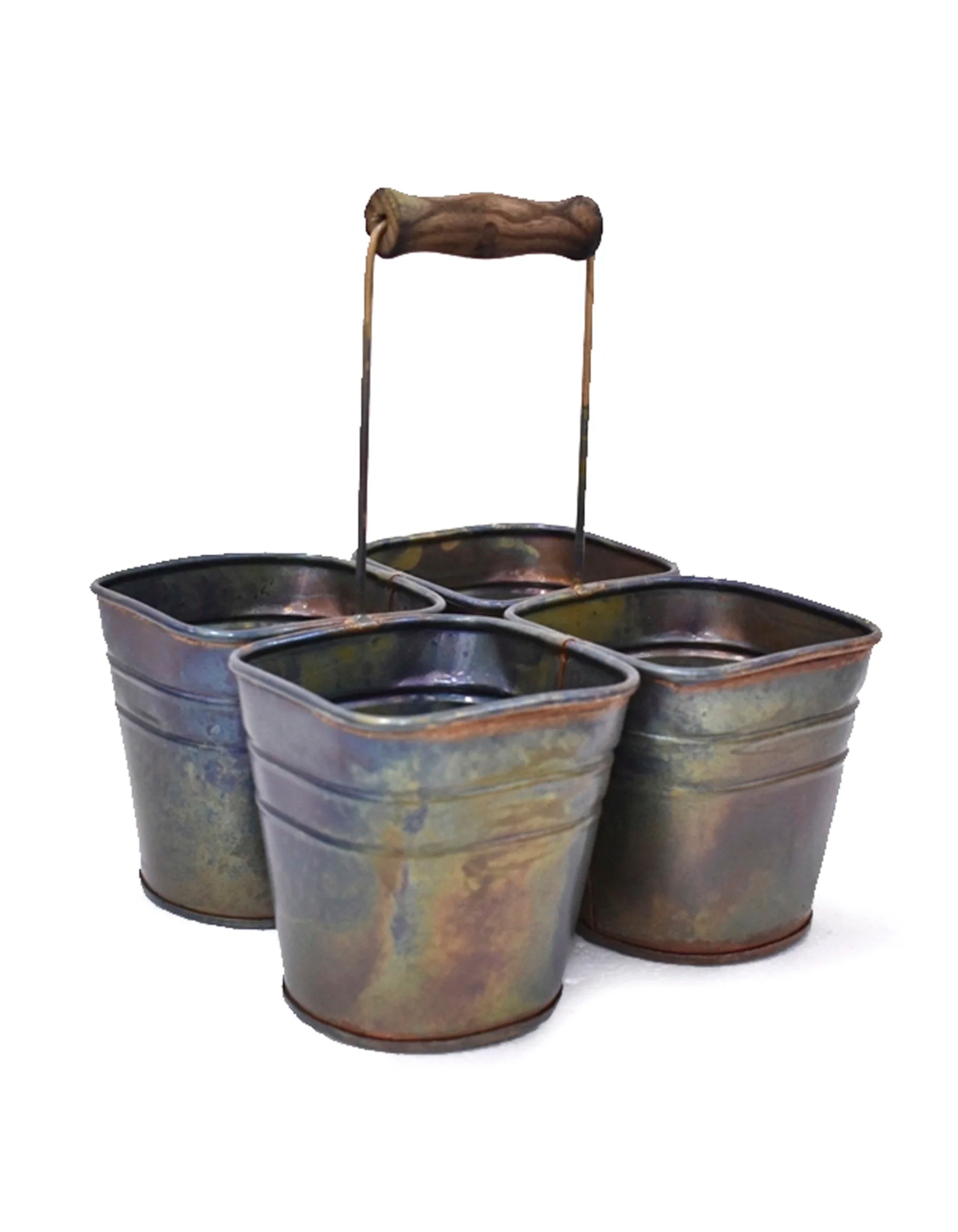 4 sammensatte jernpotter fantastisk til krydderurter eller små planter.