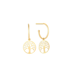 8 kt. guld ørehænger åben creol med livets træ som hænger.