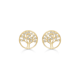 8 kt. guld ørestikker livets træ i cirkel med syntetiske cubic zirconia.