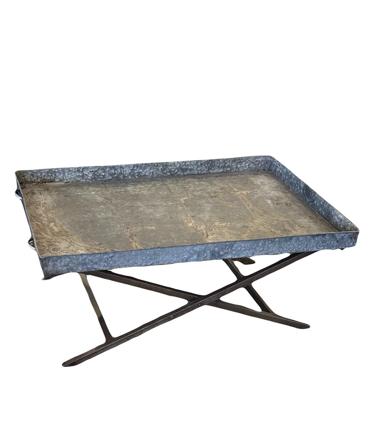 RÅT SOFABORD LAVET GAMMEL JERNBAKKE. BENENE KAN FOLDES.