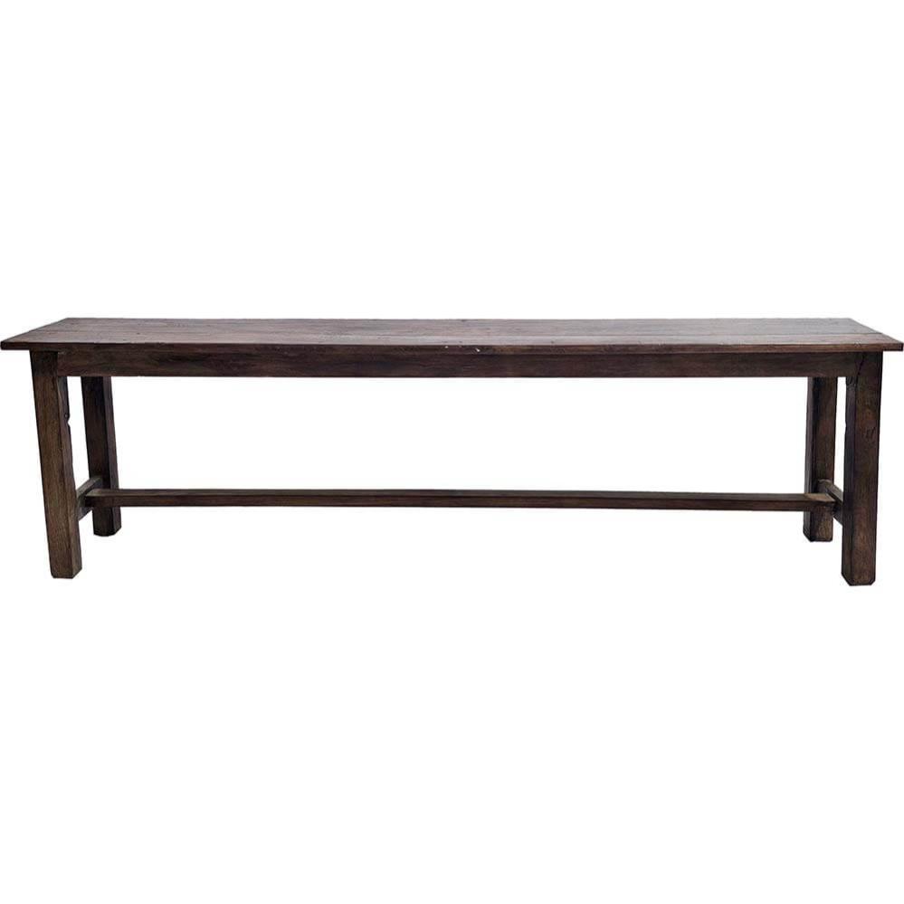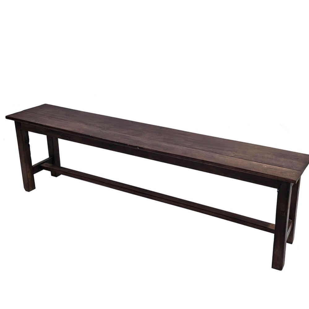 Denne smukke gamle bænk er af solidt teaktræ, hvilket gør den både robust og rustik. Dens minimalistiske design og varme træfarve gør den perfekt til ethvert rum, uanset om det er som siddeplads i en entré, langs et spisebord eller som dekorativ bænk i stuen. Den naturlige patina og de fine detaljer i træet giver bænken masser af sjæl og karakter. En alsidig klassiker, der emmer af historie og kvalitet. Bemærk at størrelsen kan variere med +/- 7 cm.