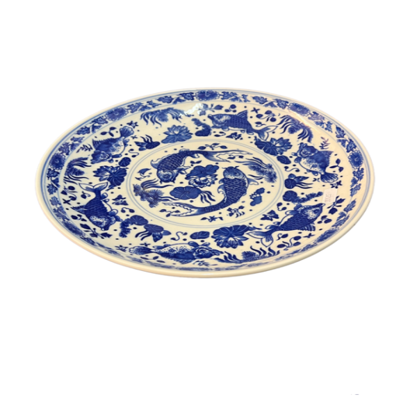 Dekorativt fiskefad med senerier af fisk. Kinesisk porcelæn.