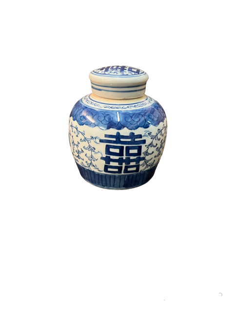 Lille dekorativ kinesisk lågkrukke. Perfekt til køkkenet til salt eller andet krydderi eller på entrebordet til nøgler, mønter og andet