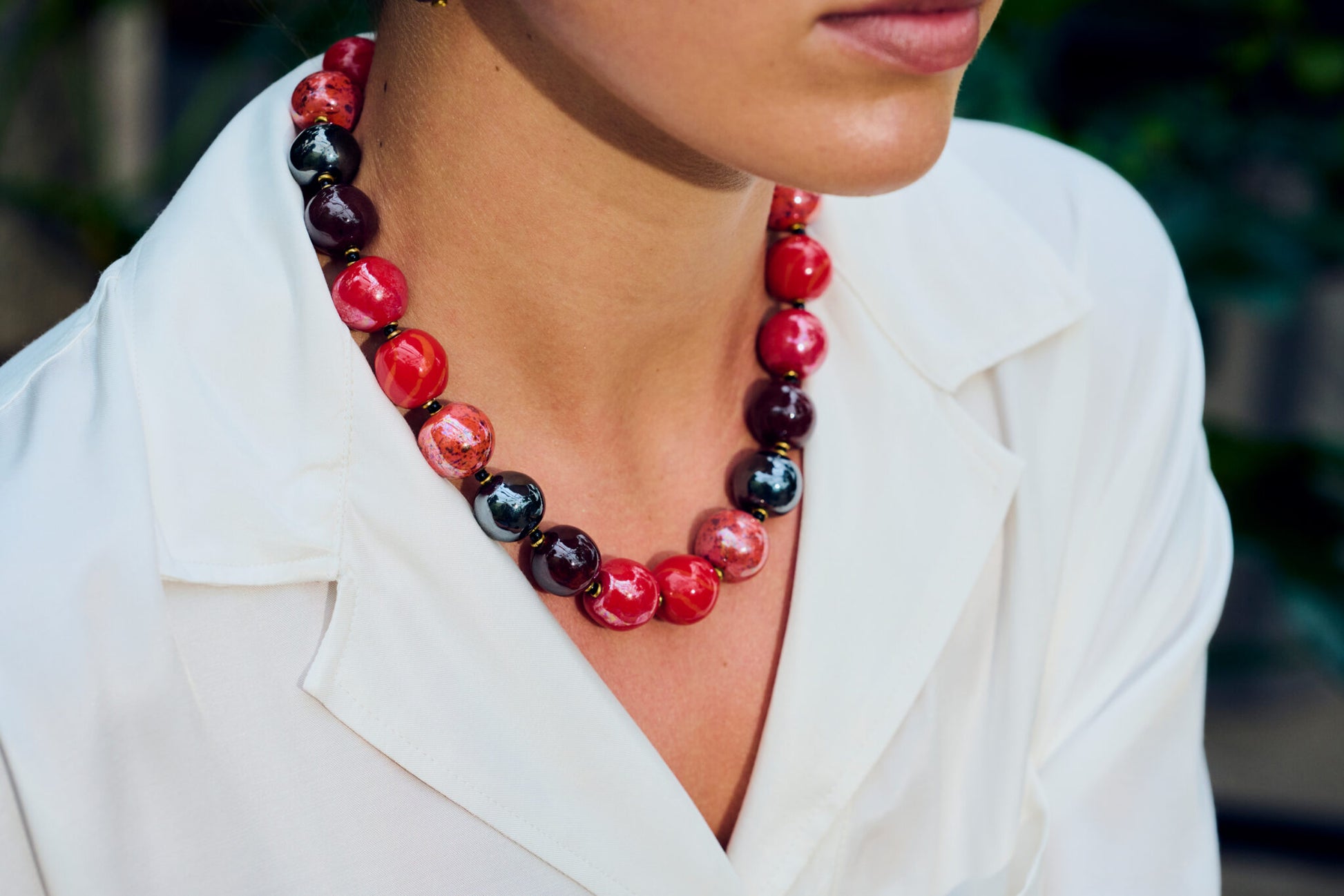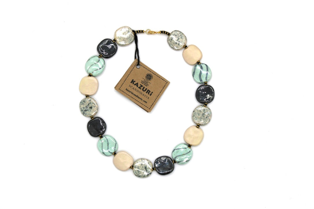Hver perle er håndlavet, håndmalet. Fra Mount Kenya. Fair Trade. Mange års erfaring med glasurer, brænding og design gør hvert enkelt smykke særdeles smukt og unikt.