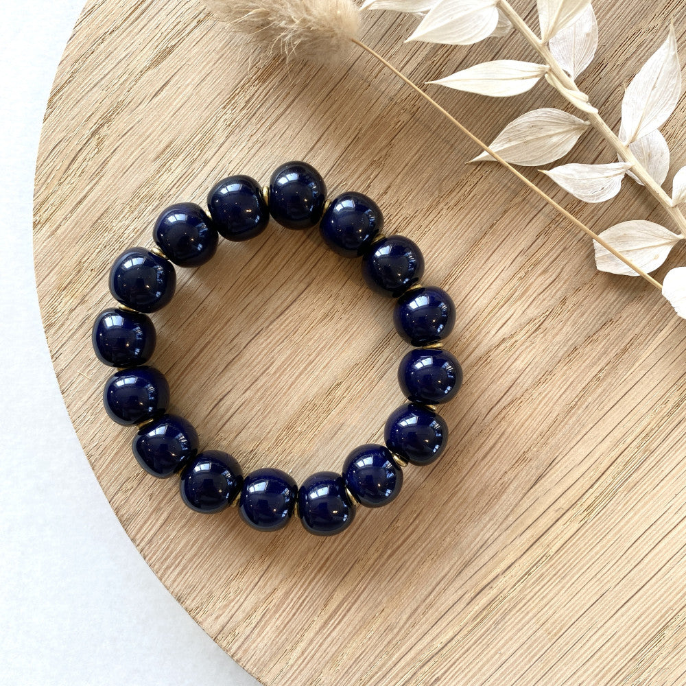 Armbånd med keramikperler, monteret på elastiktråd. Mål: ca 19 cm. Midnatsblå