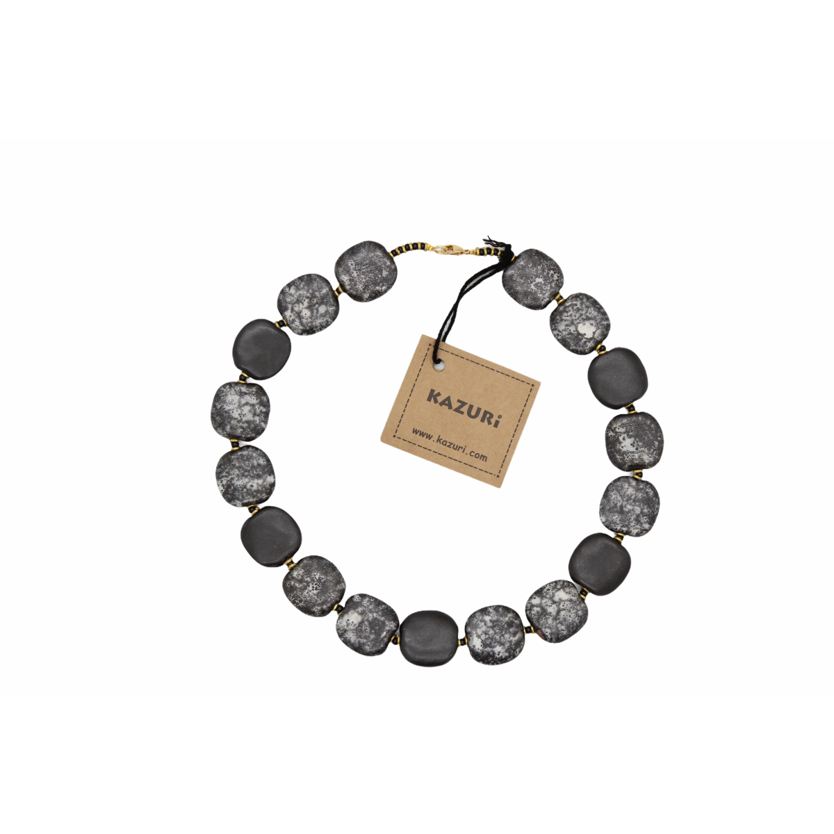 Keramik perlekæde med flade perler. Mat sorte perler med et strejf af hvidt. Mål: Ca 48 cm.