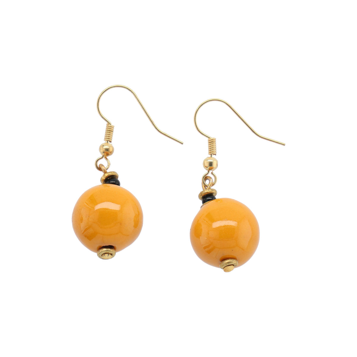 Smukke keramik øreringe i sennepsgul som matcher ethvert outfit. ( sæt a´ 2 stk ) Perle str: Ca 10 mm.