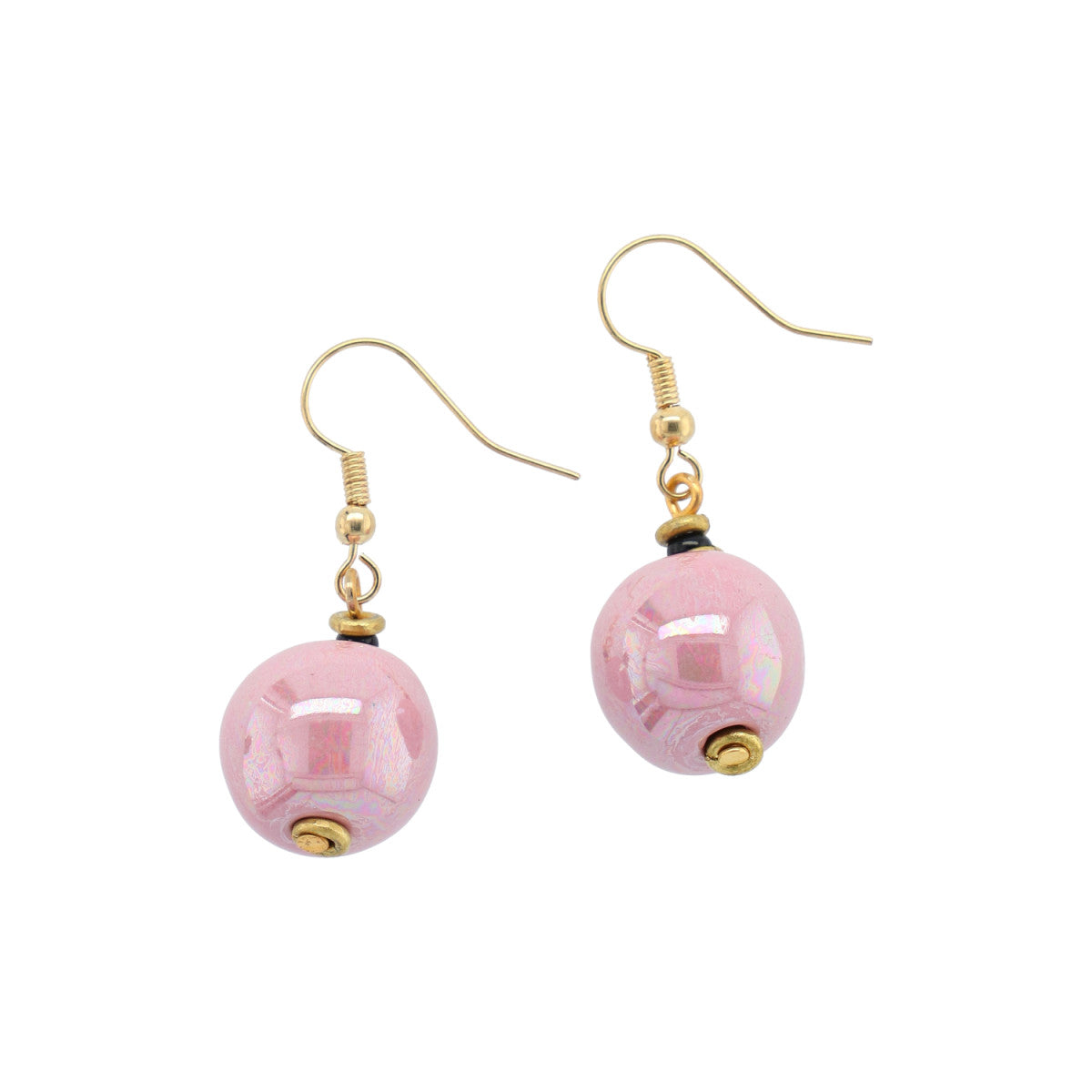 Smukke keramik øreringe i lyserød med perlemor som matcher ethvert outfit. ( sæt a´ 2 stk ) Perle str: Ca 10 mm.