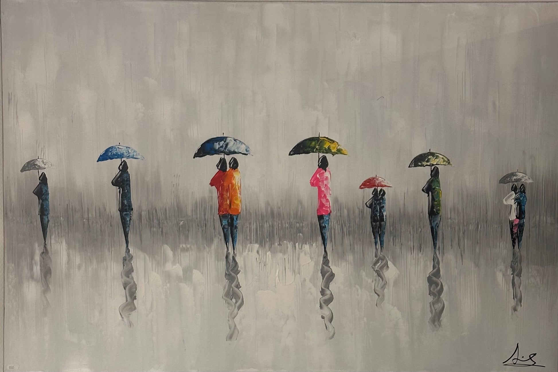 Dette håndmalede oliemaleri måler 120 x 80 cm.