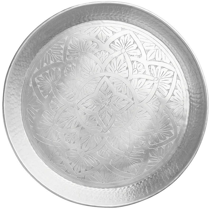 Stunning aluminimum tray for decoration. Made with embossed handmade patter by skilled Indian artisans. They hammer the pattern into the tray by hand, using old tools.