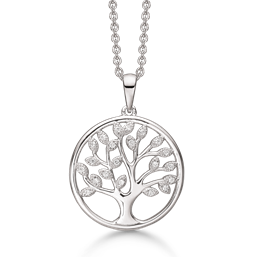 Sølv halskæde rhodineret livets træ hvor bladene er syntetiske cubic zirconia.