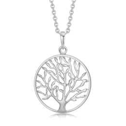 Sølv halskæde rhodineret livets træ i cirkel. "Tree of life"