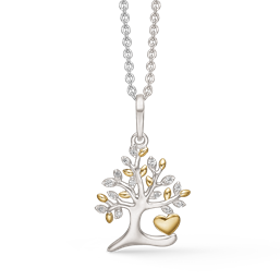 Sølv halskæde rhodineret livets træ med blade i forgyldt og syntetisk cubic zirconia.