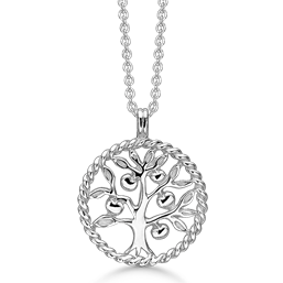 Sølv halskæde rhodineret snoet cirkel med livets træ.