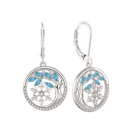 Sølv ørehænger rhodineret livets træ i cirkel med blå akvamarin og syntetiske cubic zirconia.