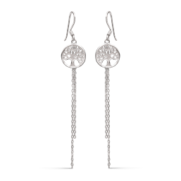 Sølv ørehænger rhodineret livets træ med aflang kæde.