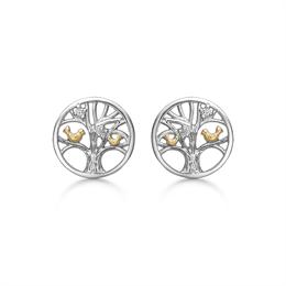 Sølv ørestikker rhodineret/forgyldt livets træ i cirkel med fugle