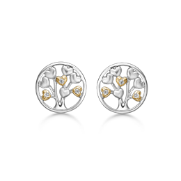 Sølv ørestikker rhodineret/forgyldt mat/blank cirkel med livet træ af hjerter og med syntetiske cubic zirconia.