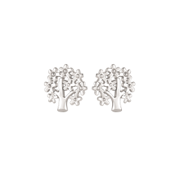 Sølv ørestikker rhodineret livets træ matte blade og blank stamme.