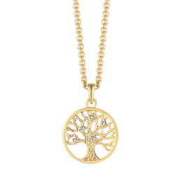 Sølvforgyldt halskæde livets træ i cirkel med syntetiske cubic zirconia.