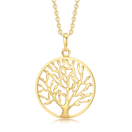 Sølvforgyldt halskæde livets træ i cirkel. "Tree of life"