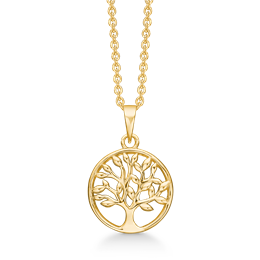 Sølvforgyldt halskæde rhodineret livets træ i cirkel.