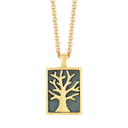 Sølvforgyldt halskæde rhodineret plade aflang firkant med livets træ med sort i bunden.