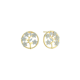 Sølvforgyldt ørestikker livets træ i cirkel med syntetisk cubic zirconia.