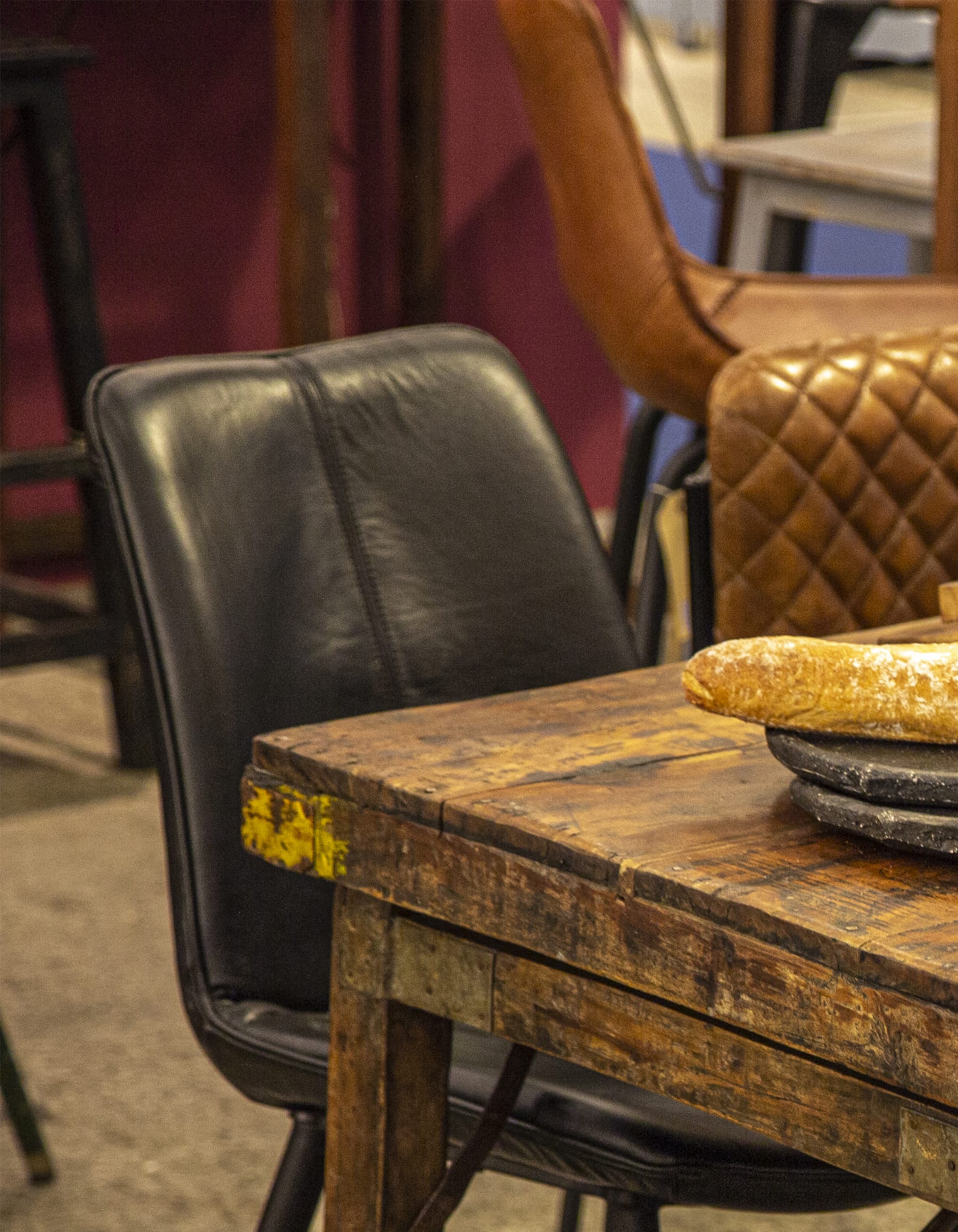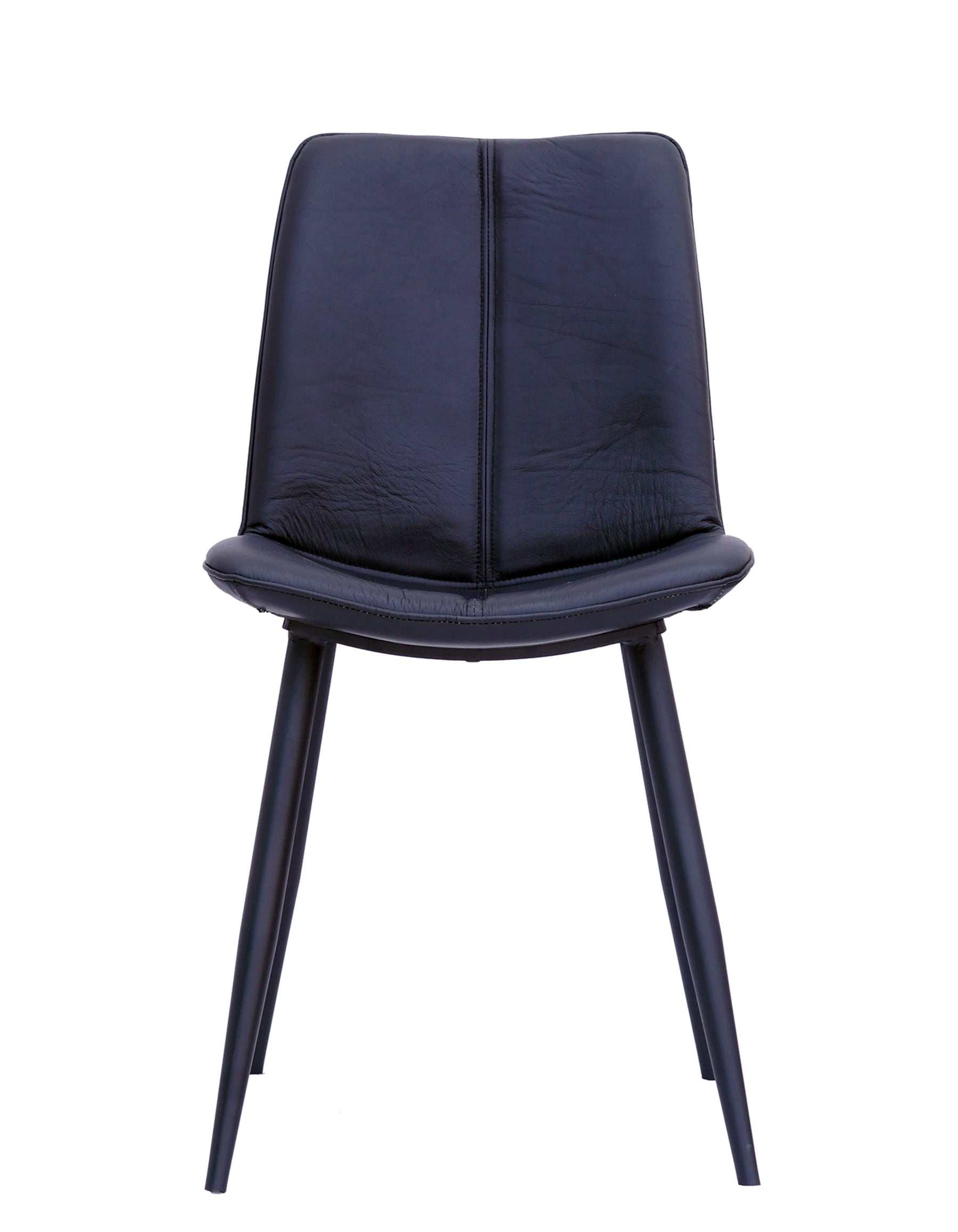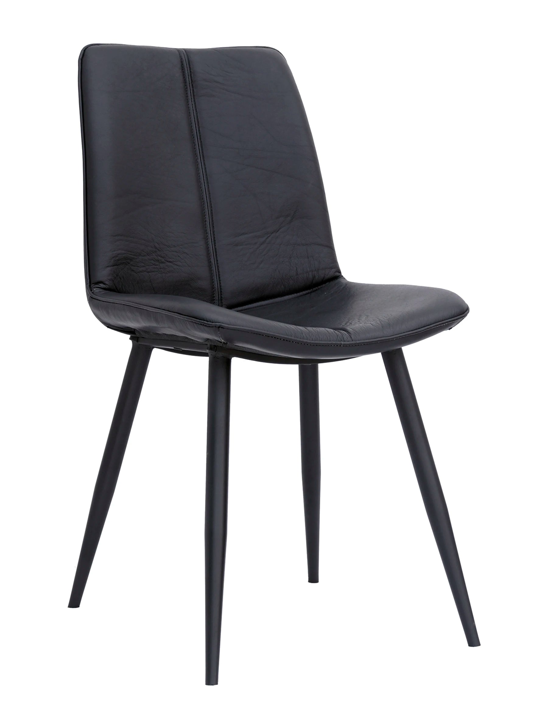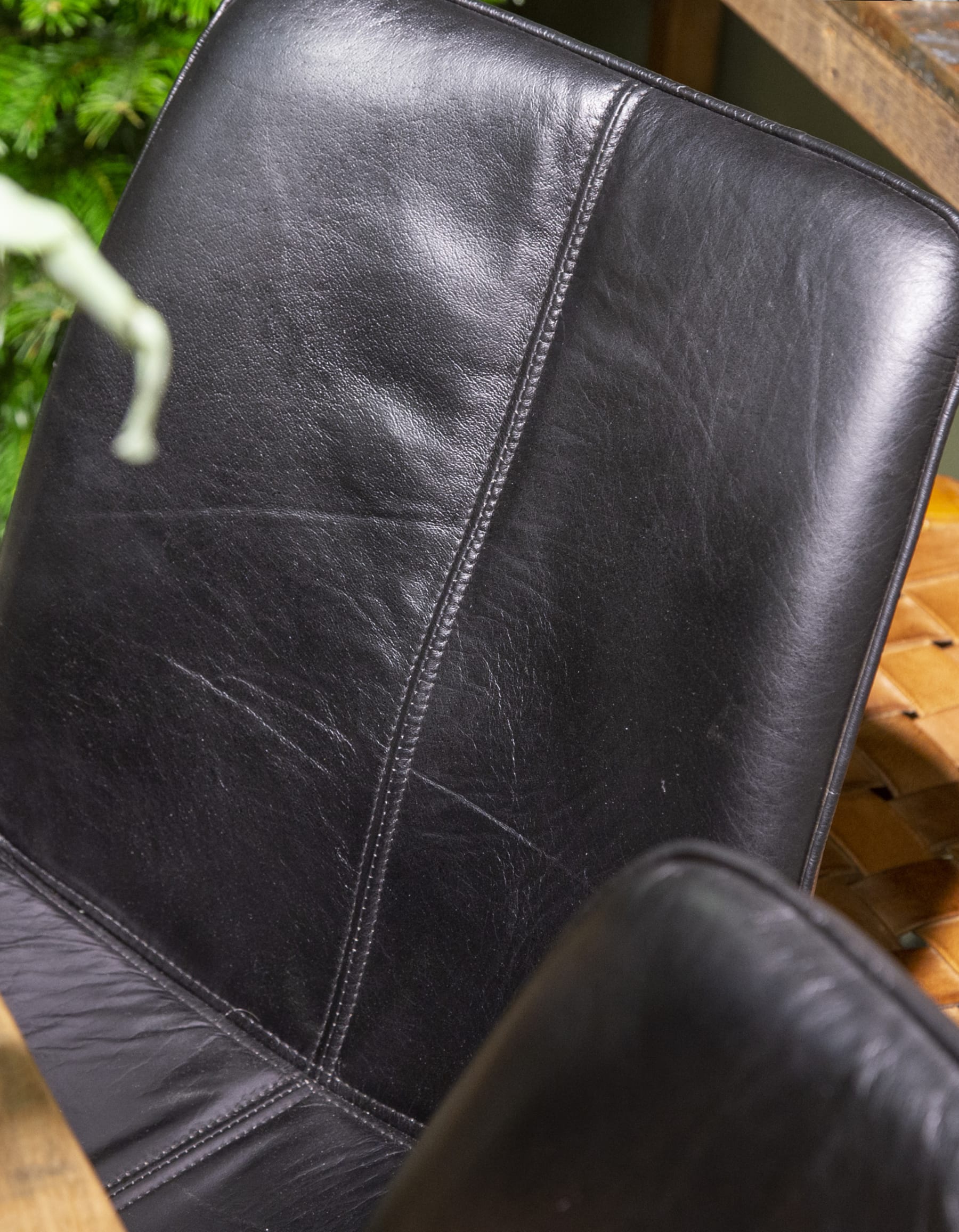 Lækker stol i gennemfarvet sort læder og sorte ben af jern.