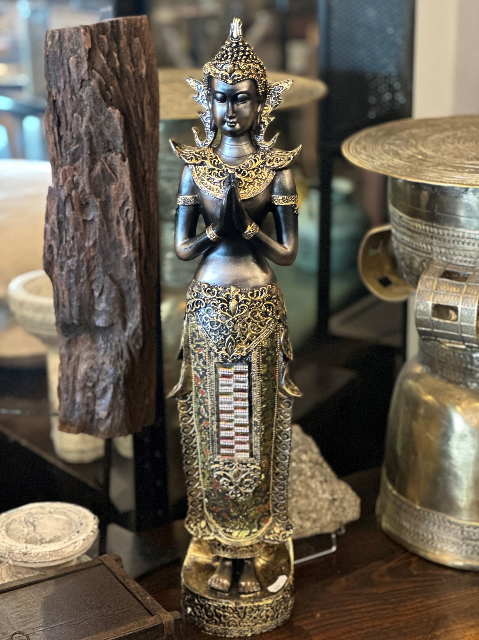 Dekorativ buddhafigur dekoreret med glasmosaik.