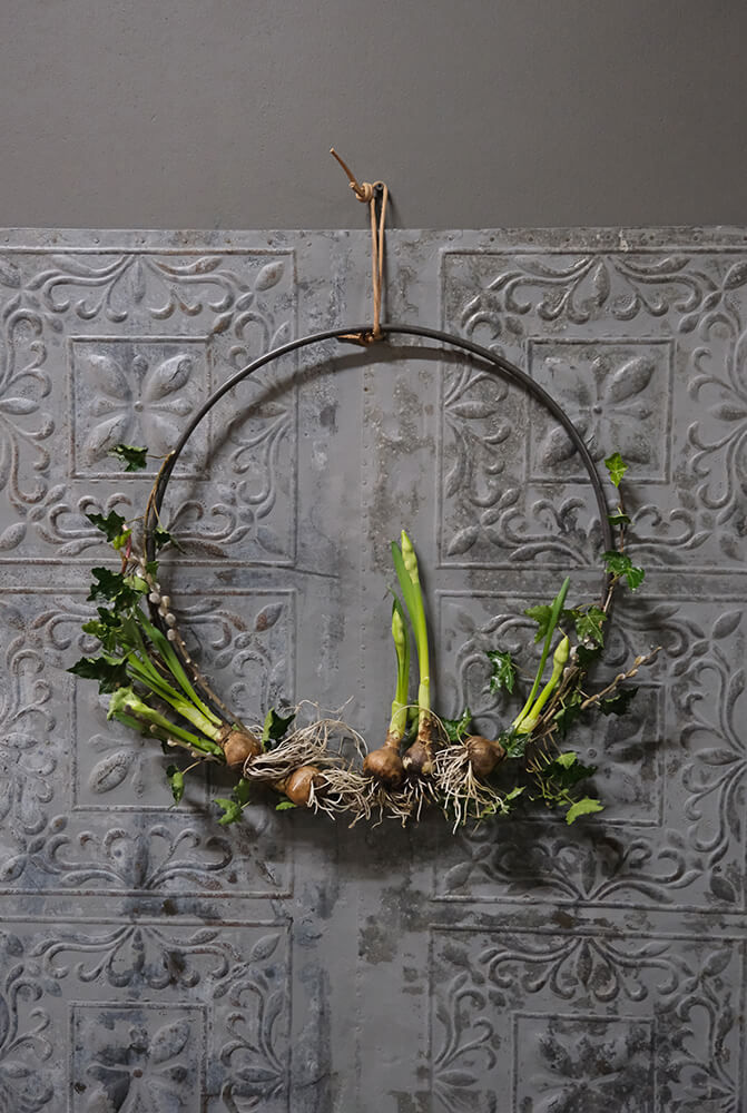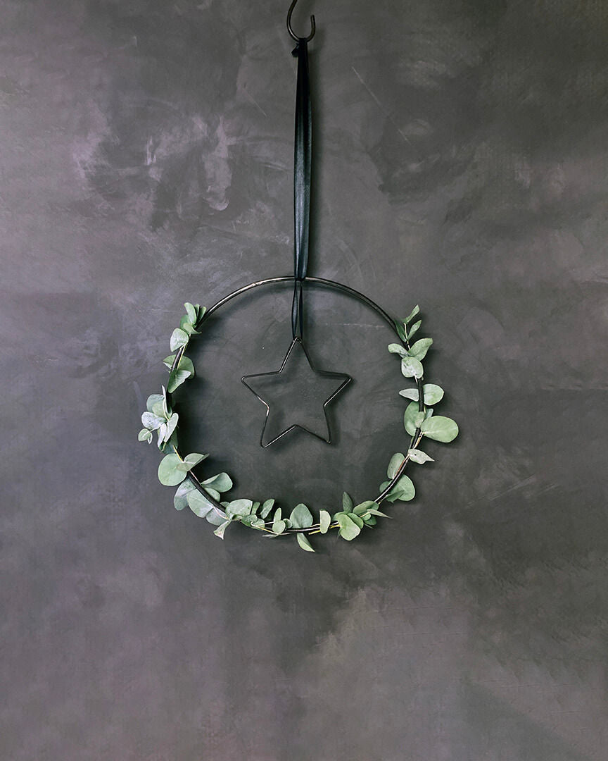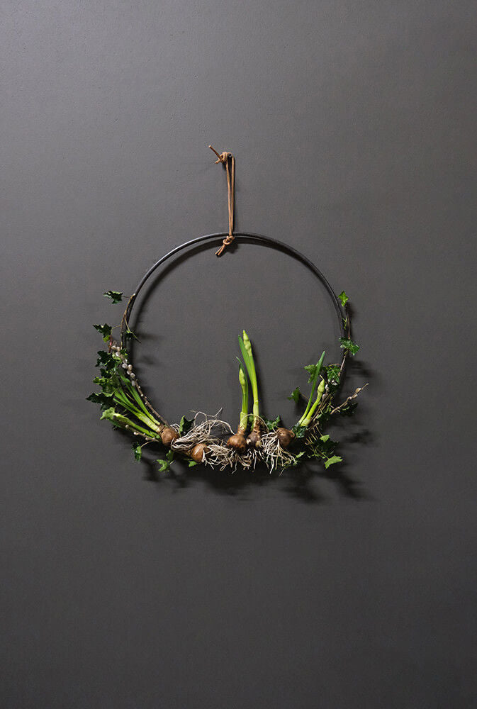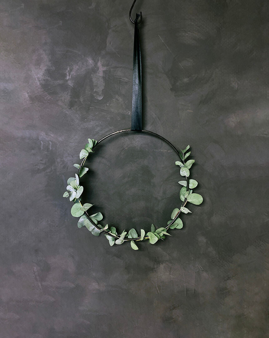 Denne jernring med en diameter på 40 cm kan bruges til både ophæng ned fra loftet eller til at hænge på væggen og døren. Brug lange læderbånd, jutesnore, fiskesnører eller dit yndlingsbånd, hvis du ønsker at ringen skal hænge frit i rummet. Inden ophæng, kan du pynte ringen på eventyrlig mange måder. Ønsker du at fremhæve årets højtider kan du i juletiden binde ringen med gran, kristtjørn, eukalyptus, julepynt, lysholdere etc. Du kan bruge den som pakkekalender med 24 små pakker hængende ned fra ringen. Til Påske og andre højtider kan du bruge de vækster og grene som årstiden byder på. Ringen er også dekorativ hængende på væggen pyntet med f.eks. evighedsblomster, og på hoveddøren som en dekorativ krans. Du kan også bruge jernringen som en form for vægramme og klistre billeder og små kærlige kort på væggen inden for ringen. Et sjovt alternativ til opslagstavlen. Læg ringen på et fad på spisebordet pyntet med grønt og arranger med lys og andre pynteting på fadet for at skabe hygge. En simpel ring med muligheder så langt fantasien rækker. Ringen findes også i en større størrelse på 70 cm
