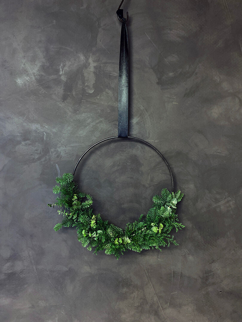 Denne jernring med en diameter på 70 cm kan bruges både til ophæng ned fra loftet eller til at hænge på væggen. Brug lange læderbånd, jutesnore, fiskesnører eller dit yndlingsbånd, hvis du ønsker at ringen skal hænge frit i rummet. Inden ophæng, kan du pynte ringen på eventyrlig mange måder. Ønsker du at fremhæve årets højtider kan du i juletiden binde ringen med gran, kristtjørn, eukalyptus, julepynt, lysholdere etc. Du kan også bruge den som pakkekalender med 24 små pakker hængende ned fra ringen. Til Påske og andre højtider kan du bruge de vækster og grene som årstiden byder på. Ringen er også dekorativ hængende på væggen pyntet med f.eks. evighedsblomster. Du kan også bruge jernringen som en form for vægramme og klistre billeder og små kærlige kort på væggen inden for ringen. Et sjovt alternativ til opslagstavlen. En simpel ring med muligheder så langt fantasien rækker. Ringen findes også i en mindre størrelse på 40 cm.