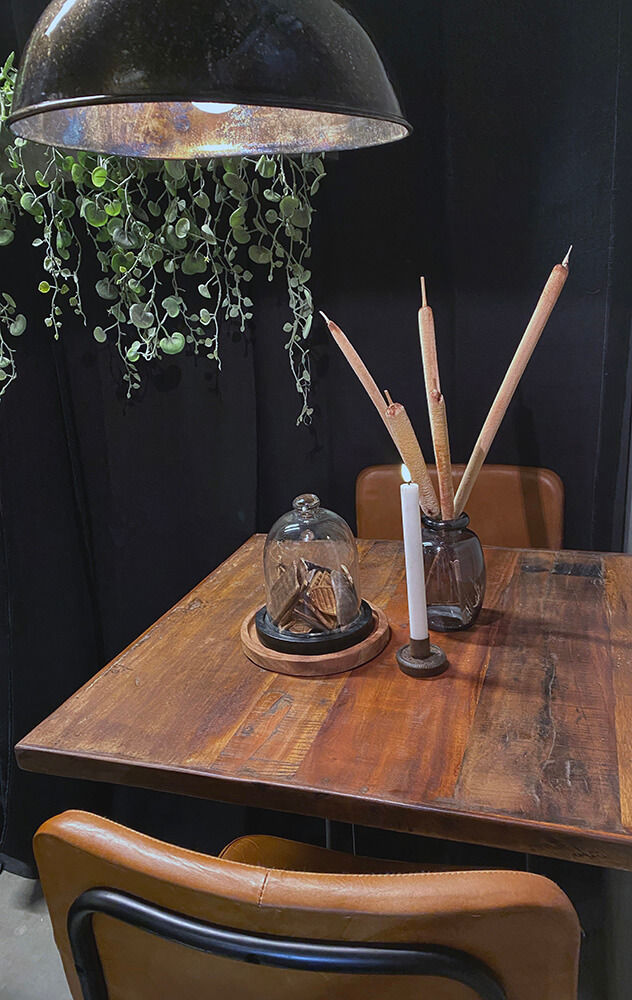 Flot bordplade fremstillet af genbrugstræ. Bordpladen er kvadratisk 70 x 70 cm og passer perfekt til de understel, du finder i webshoppen. I samme serie finder du også mange andre bordplader fremstillet i genbrugstræ. Det giver et meget cool udtryk hvis du mixer de forskellige bordplader i indretningen af din café eller restaurant. For at lave et mere ensartet udtryk, kan du også blot vælge at bruge bordplader i samme størrelser. Vi assisterer gerne med vejledning og forslag til din indretning.