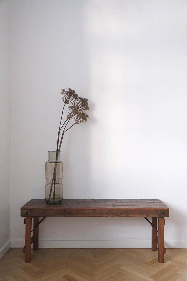 Smuk træbænk med et fint slidt historisk udtryk, der tilføjer indretningen masser af personlighed. Lavet af genbrugstræ, hvor den naturlige patina og små ujævnheder fortæller en historie. En bænk som denne bringer både charme og karakter ind i din indretning. Den passer perfekt sammen med et af vores rustikke spiseborde og skaber en helhed, der emmer af hygge og autencitet. Bænken er samtidig et oplagt valg for dig, der tænker bæredygtigt, når du køber nyt, og ønsker møbler med en fortælling. Ideel som siddeplads i køkkenet, entréen eller som en dekorativ og praktisk løsning i din butik.