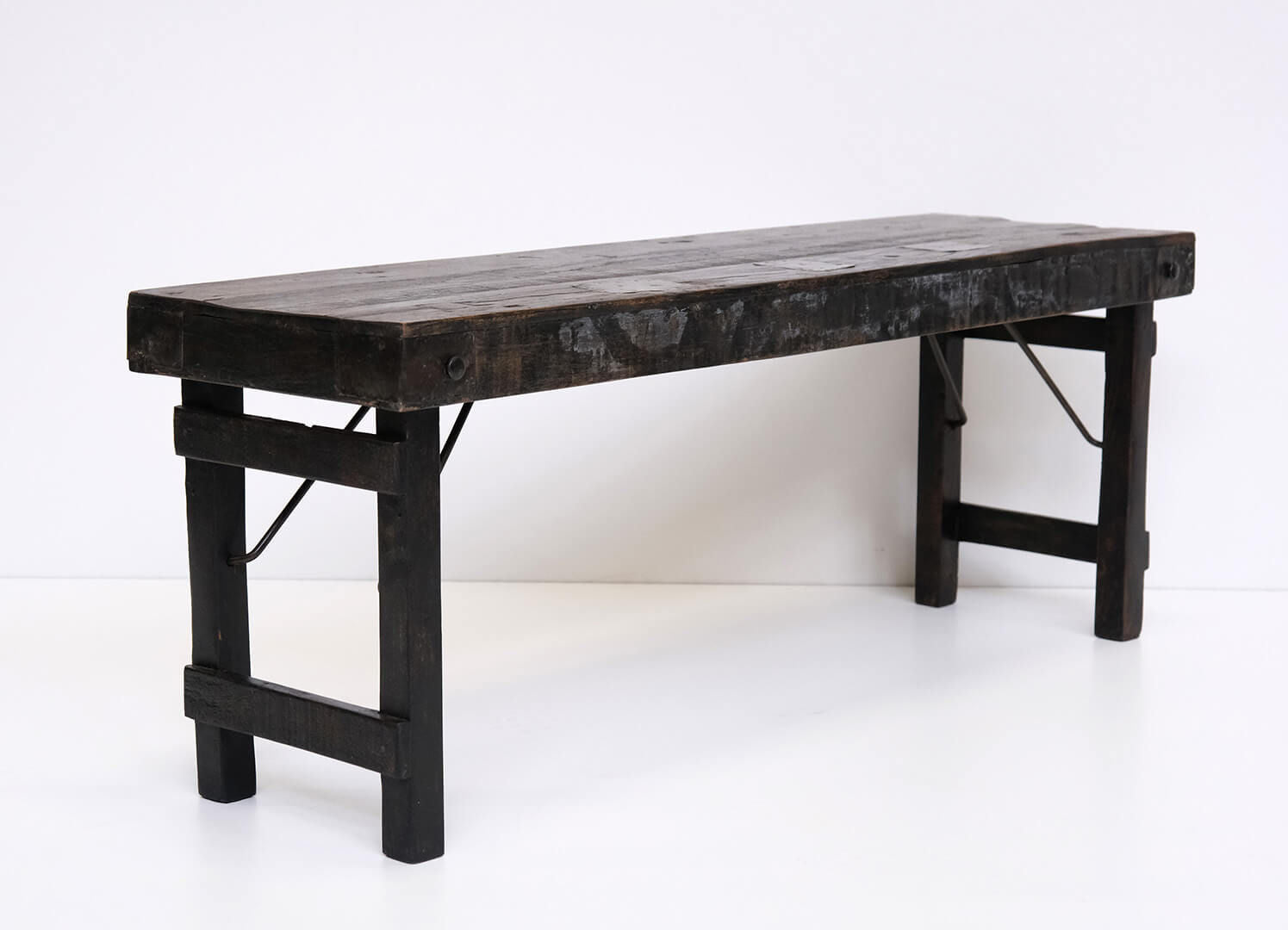 Rå og charmerende sort træbænk med masser af kant og historie. Den mørke, slidte finish fremhæver træets naturlige struktur og tilføjer et autentisk, rustikt look, der passer perfekt ind i en maskulin og rå indretning. Denne bænk er fremstillet af genbrugstræ og har et unikt udtryk, hvor små ujævnheder og patina fortæller om tidligere brug. Den sorte farve giver den et moderne twist, der gør den nem at kombinere med både træ- og metaldetaljer. Brug den som siddeplads ved et spisebord, som dekorativ opbevaringsløsning i entréen, eller som en stilfuld detalje i din butik. En træbænk, der skaber personlighed og varme i rummet.