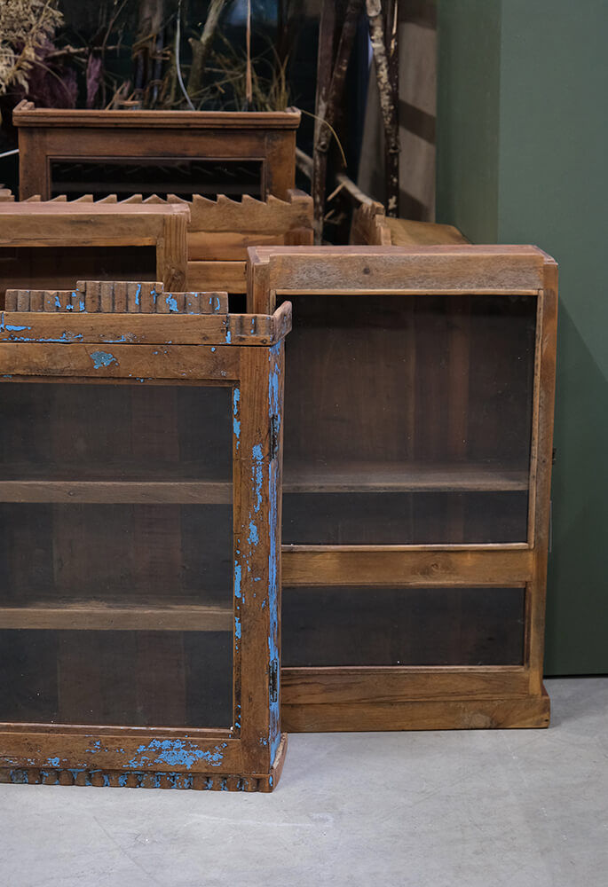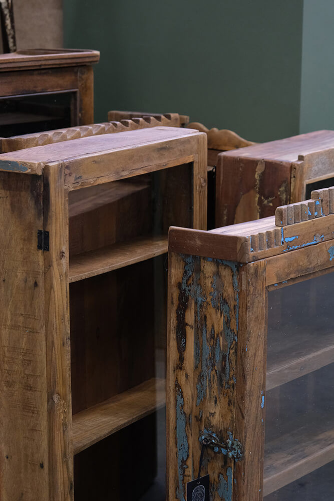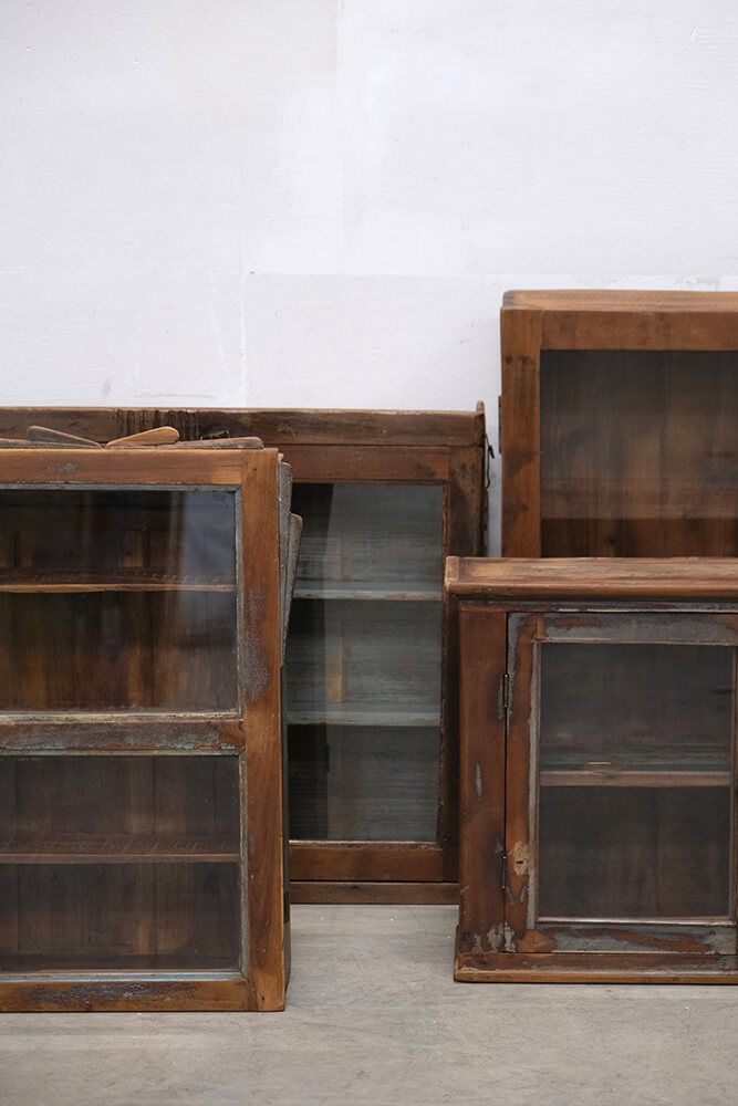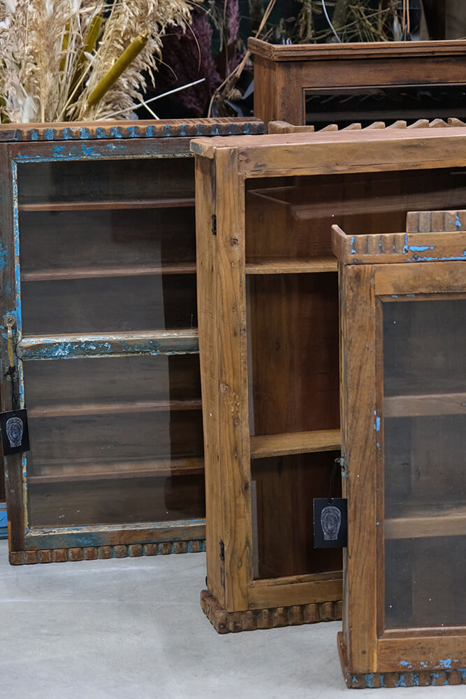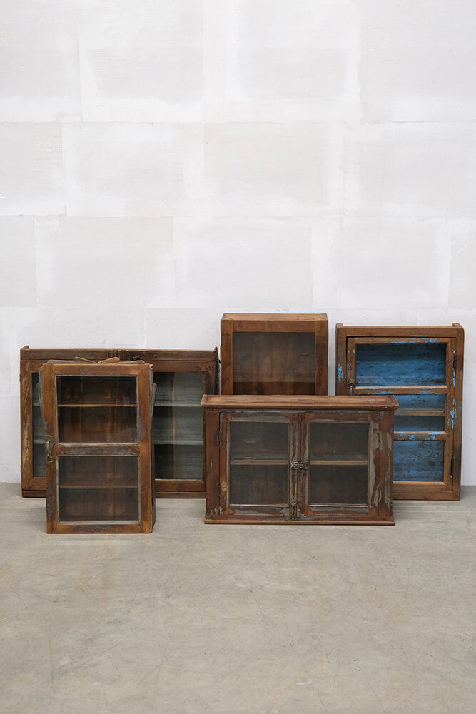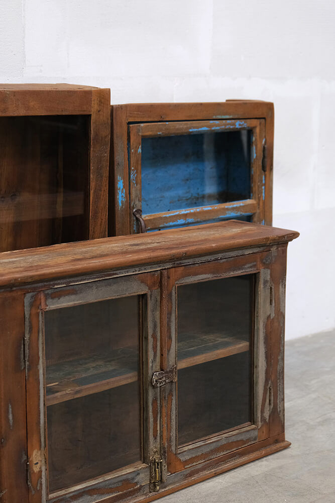 Disse skønne vægskabe er hver især fyldt med autentisk karakter og charme. Hvert skab er med individuelle detaljer og farver, der fortæller sin egen historie. De forskellige lag af maling og patina giver hvert skab et rustikt og råt udtryk, perfekt til at skabe en varm og personlig atmosfære i dit hjem eller business. Det rå og naturlige træ kombineret med skabenes originale detaljer, gør dem ideelle til både vintage-indretninger og moderne, nordiske hjem. Disse vægskabe vil være ideelle til at opbevare og udstille småting med stil og karakter.