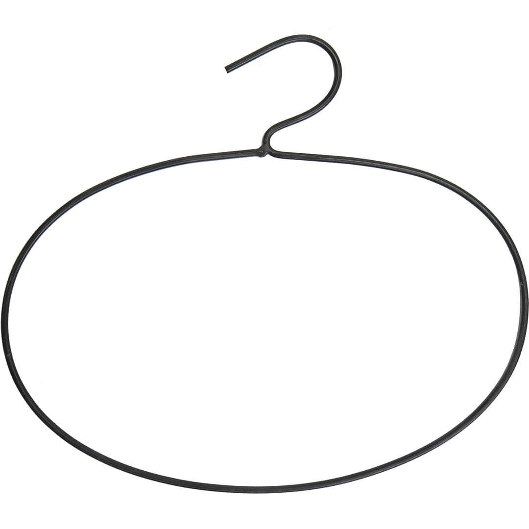 Denne tynde sortmalede metalbøjle er bukket i et stykke. Den ovale form giver et let og enkelt udtryk. Bøjlen fylder ikke meget i din garderobe eller på dit tøjstativ, og den er perfekt til tørklæder, strømpebukser eller bælter. Den ovale bøjle kan også bruges på badeværelset til håndklæder. Bøjlen er ideel til blomsterbinderi, både med frisk grønt eller smukke tørrede blomster, og kan hænge og dekorere på din yderdør, eller hvor du ønsker det. Skab et enkelt og industrielt look ved at hænge bøjlerne på et af de lækre tøjstativer du finder her i webshoppen.