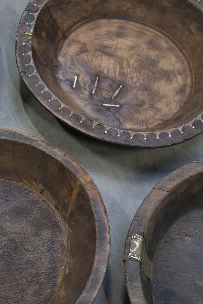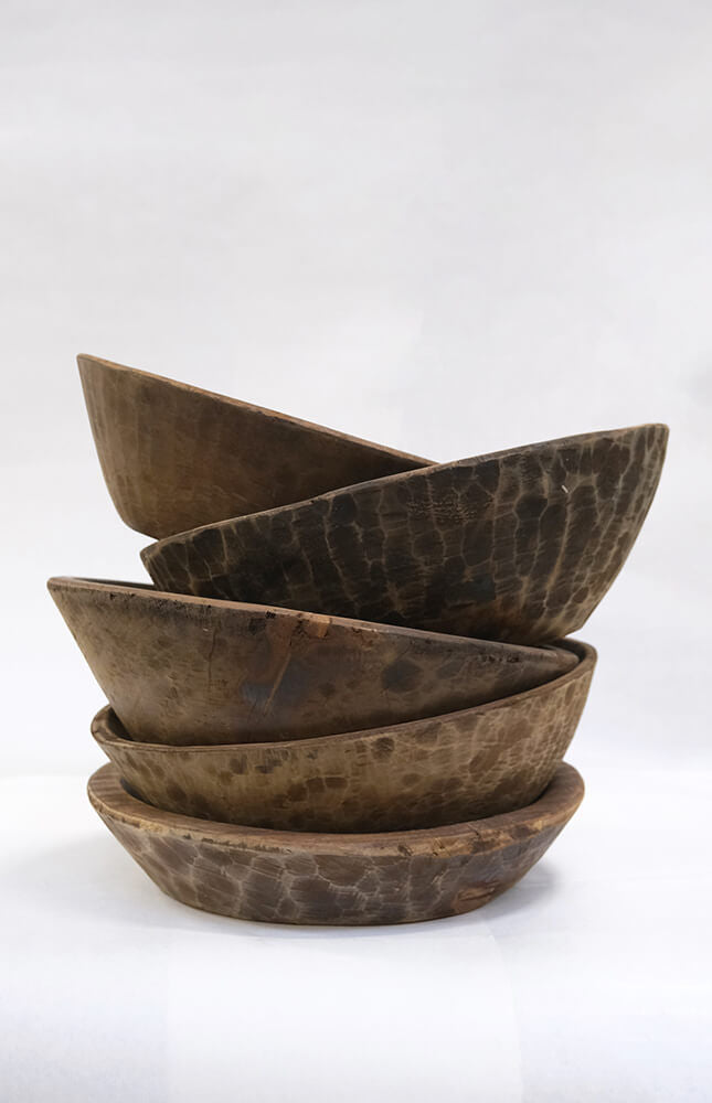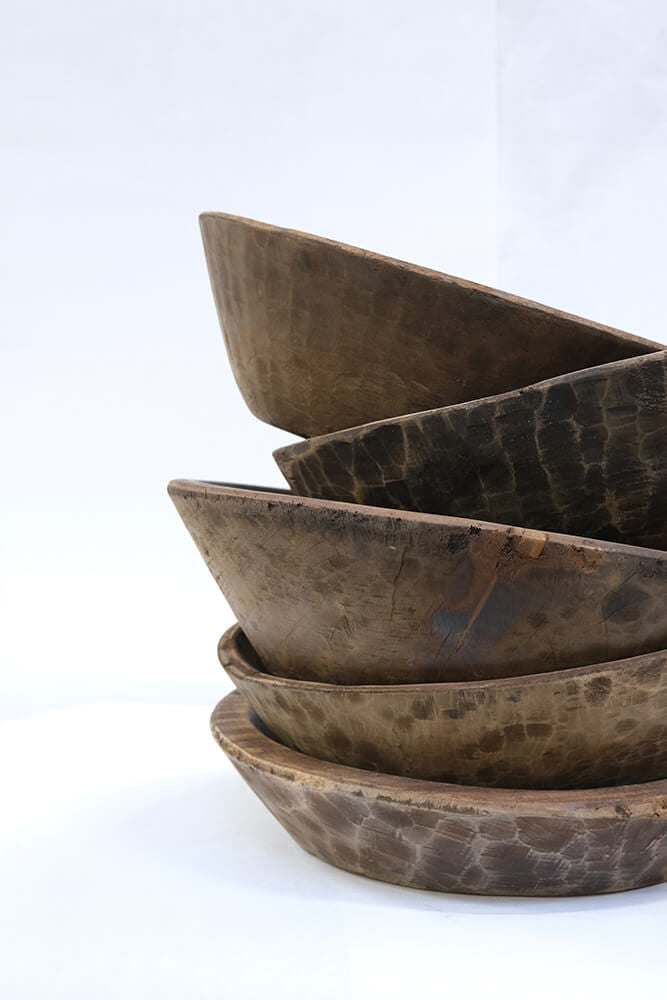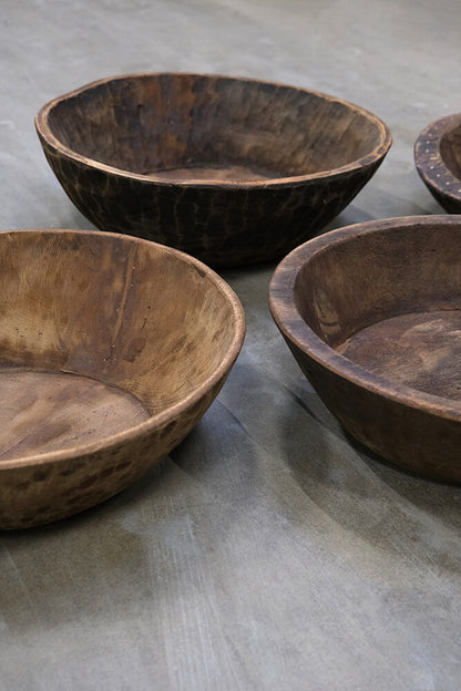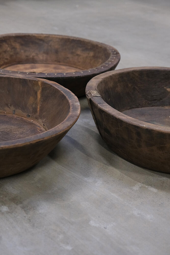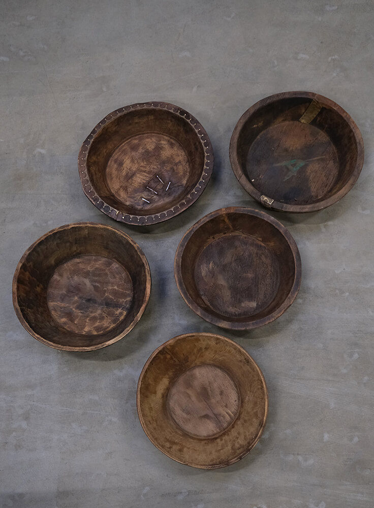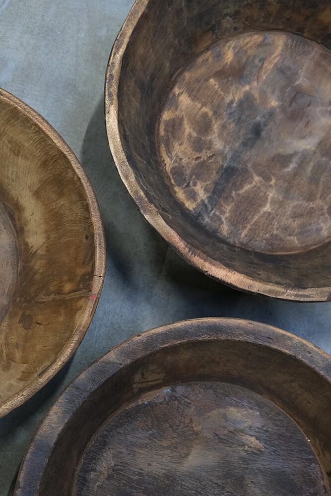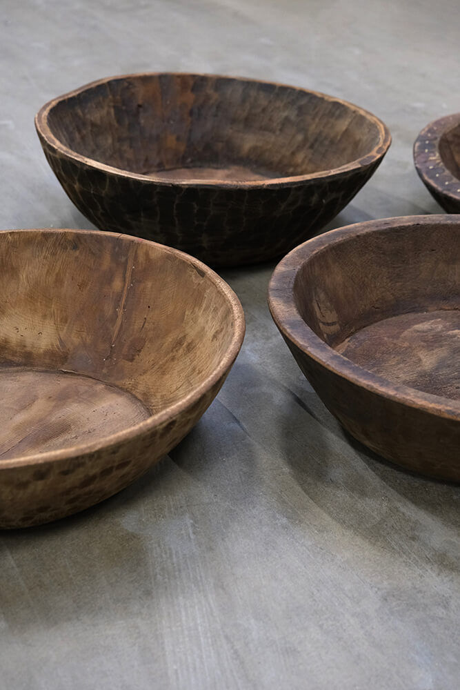 Disse fantastiske gamle træskåle i størrelse M er fyldt med historie og karakter. Med en diameter på 40-50 cm og en højde fra 8-16 cm er de rummelige og robuste, og de bærer tydelige brugsspor i form af patina og unikke detaljer, som kun ægte håndværk kan have. Skålene er ideelle som dekoration i både hjemmet, restauranten eller butikken. Brug dem som et naturligt blikfang på spisebordet med frugt, brød eller som base for en smuk, rustik opstilling med planter og lys. De tilfører varme og sjæl til ethvert rum og fungerer perfekt i både moderne og vintage-inspirerede indretninger. Ingen af skålene er ens, men alle har en charme, der gør dem til noget særligt.