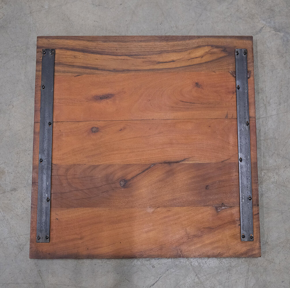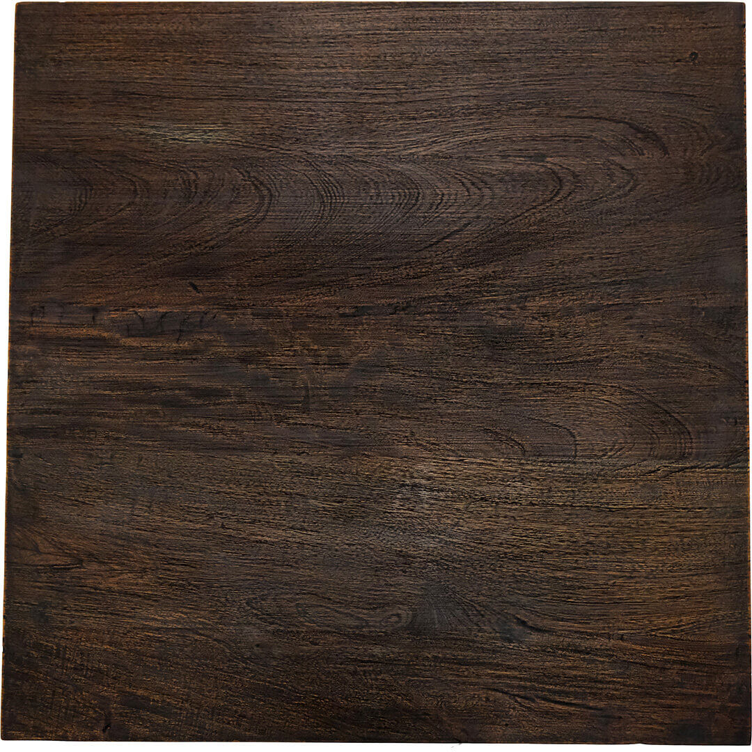 Skøn mørk kvadratisk cafebordplade fremstillet i genbrugstræ. Bordpladen er blevet sandblæst for at gøre den mest muligt glat og herefter er den malet antiksort. Strukturen og nuancen på genbrugstræet gør at bordpladen varierer fra mørkebrun til sort nuance. Brug bordpladen i din café eller restaurant med et af de skønne understel, der findes her i shoppen.