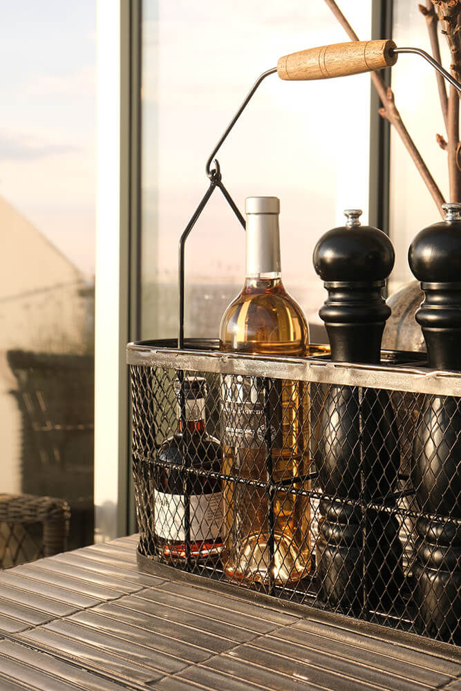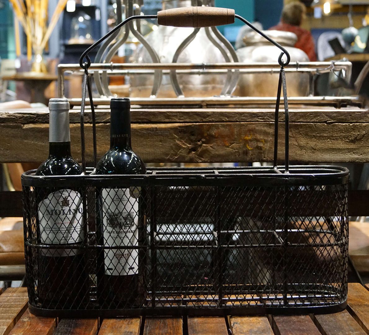 Aflang robust trådkurv med 5 rum der alle passer til vinflasker. Trådkurven har hank med træhåndtag. Brug denne dekorative trådkurv til flasker, blomster, olier og krydderurter. Der er mange anvendelsesmuligheder både i dit private hjem og i din business.