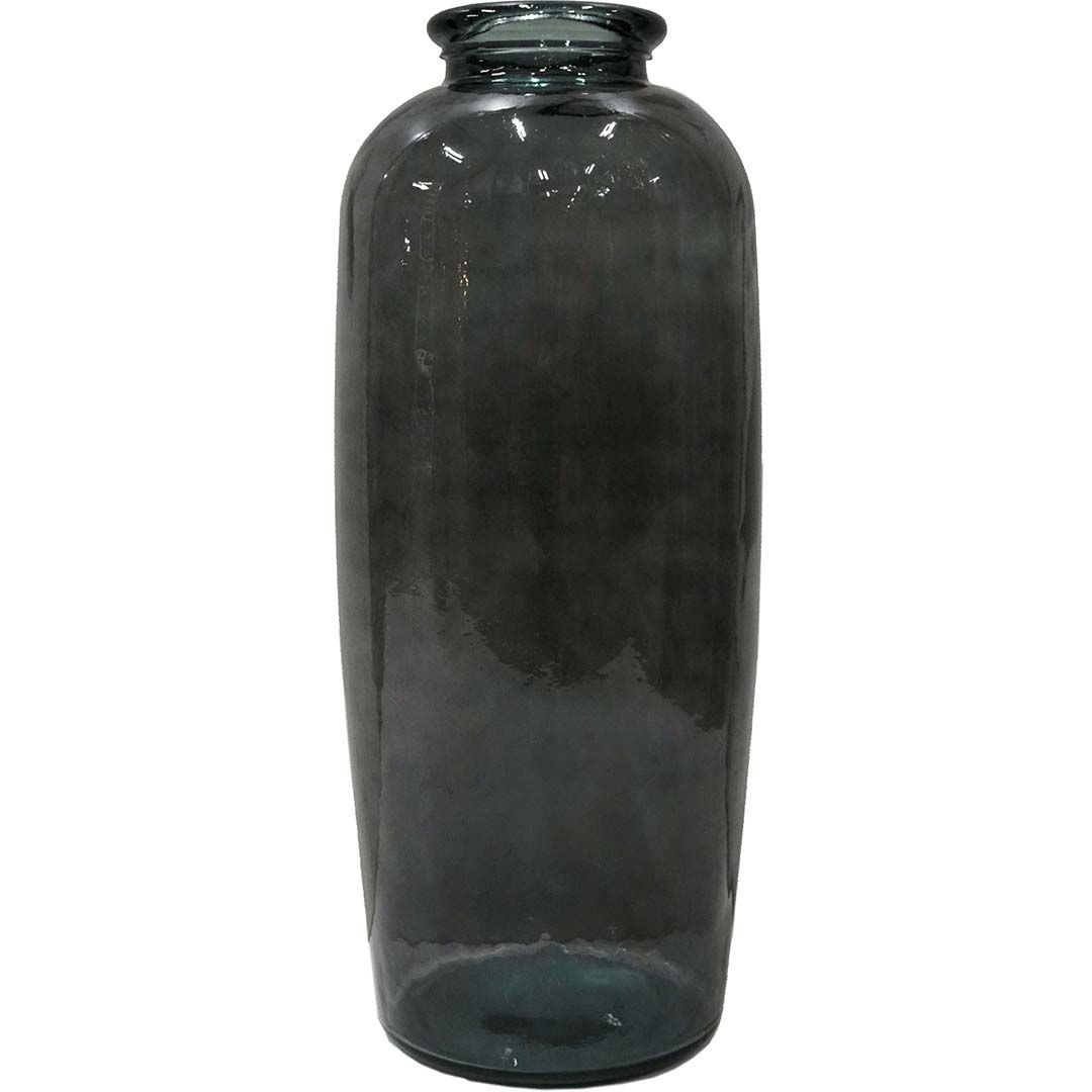 Stor dekorativ vase i en smuk grå farve. Med denne store glasvase fremstillet af genbrugsglas kan du tilføre din indretning et flot blikfang. Pynt vasen med alt smukt fra naturen - store grene eller blomster. Vasen er også en smuk skulptur at have stående uden noget i. Du kan både bruge vasen i indretningen af din bolig, men den er vil også være fantastisk at bruge i din business. Stil en eller flere sammen i teaterets, hotellets eller biografens foyer. Det vil være et flot første møde når man træder ind i dit univers. Hvis du pynter med årstidens grene, vil det også være smukt at pynte grenene med årets højtidspynt - Jul og Påske. Det er blot et par bud på de mange muligheder der er med så stor en smuk vase i genbrugsglas. Vasen er lavet af 100% genbrugsglas, og der kan derfor forekomme små bobler og mindre ujævnheder i glasset.