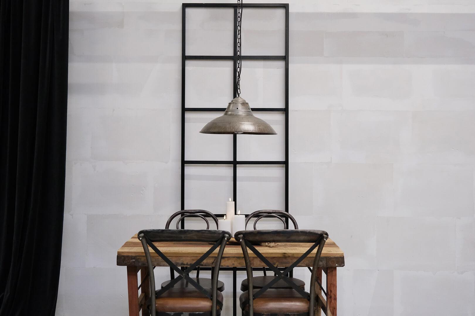 Bistro spisebordstol med kryds i ryggen. Denne klassiske spisebordstol er fremstillet i jern og har et polstret lædersæde som giver en ekstra komfort til stolen. Spisebordstolen er ideel at bruge både privat og i professionel sammenhæng. De synlige svejsninger giver stolen et råt udtryk der tilfører din indretning et moderne og rustikt look.